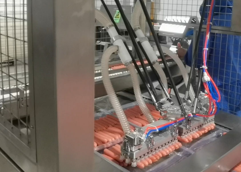 電腦全自動(dòng)連續(xù)拉伸真空包裝機(jī)產(chǎn)品應(yīng)用:該設(shè)備主要適用于臺(tái)烤腸、火腿腸、脆脆腸等需要真空包裝的產(chǎn)品。